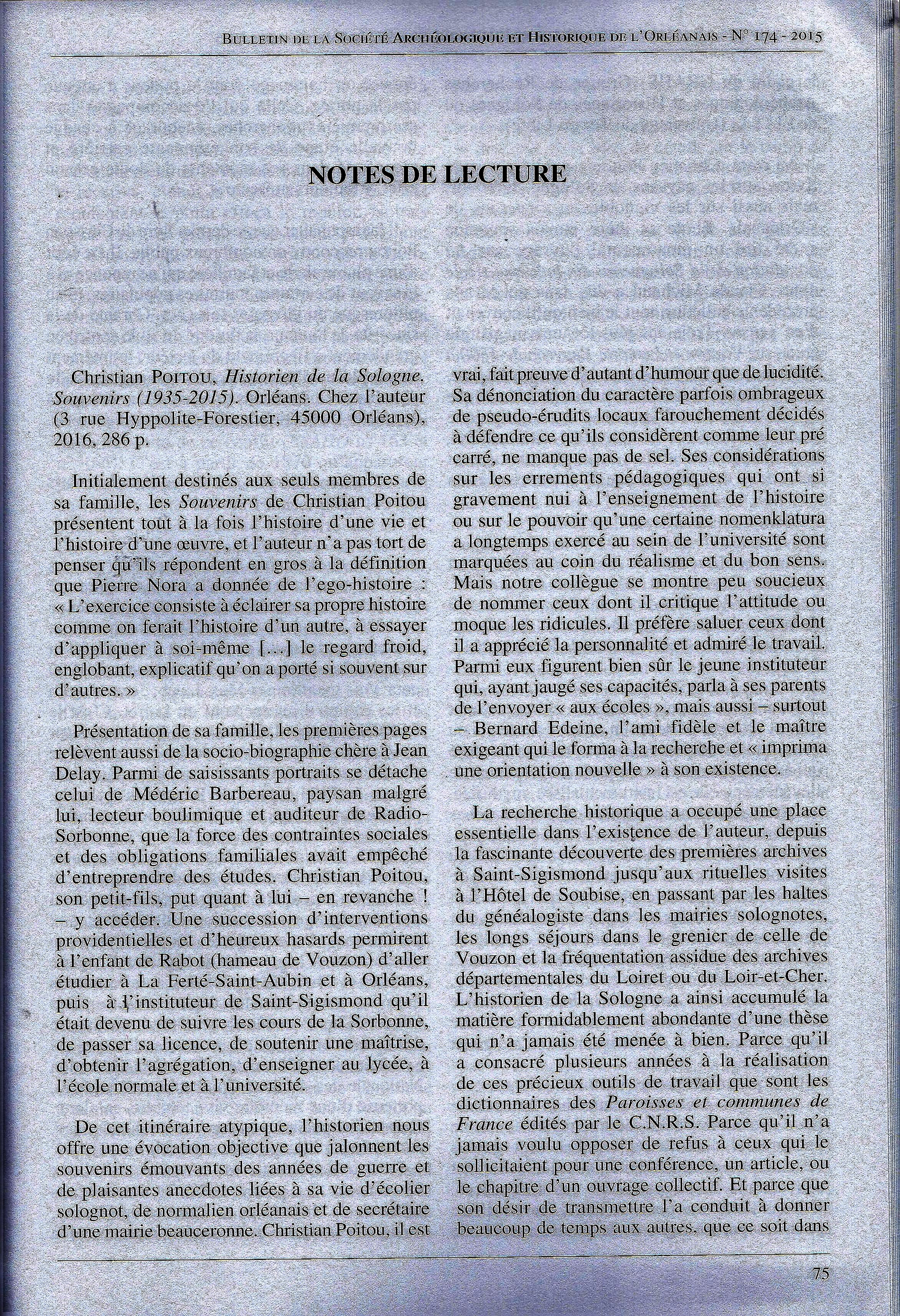 - Bulletin de la Société Archéologique et Historique de l'Orléanais n° 174